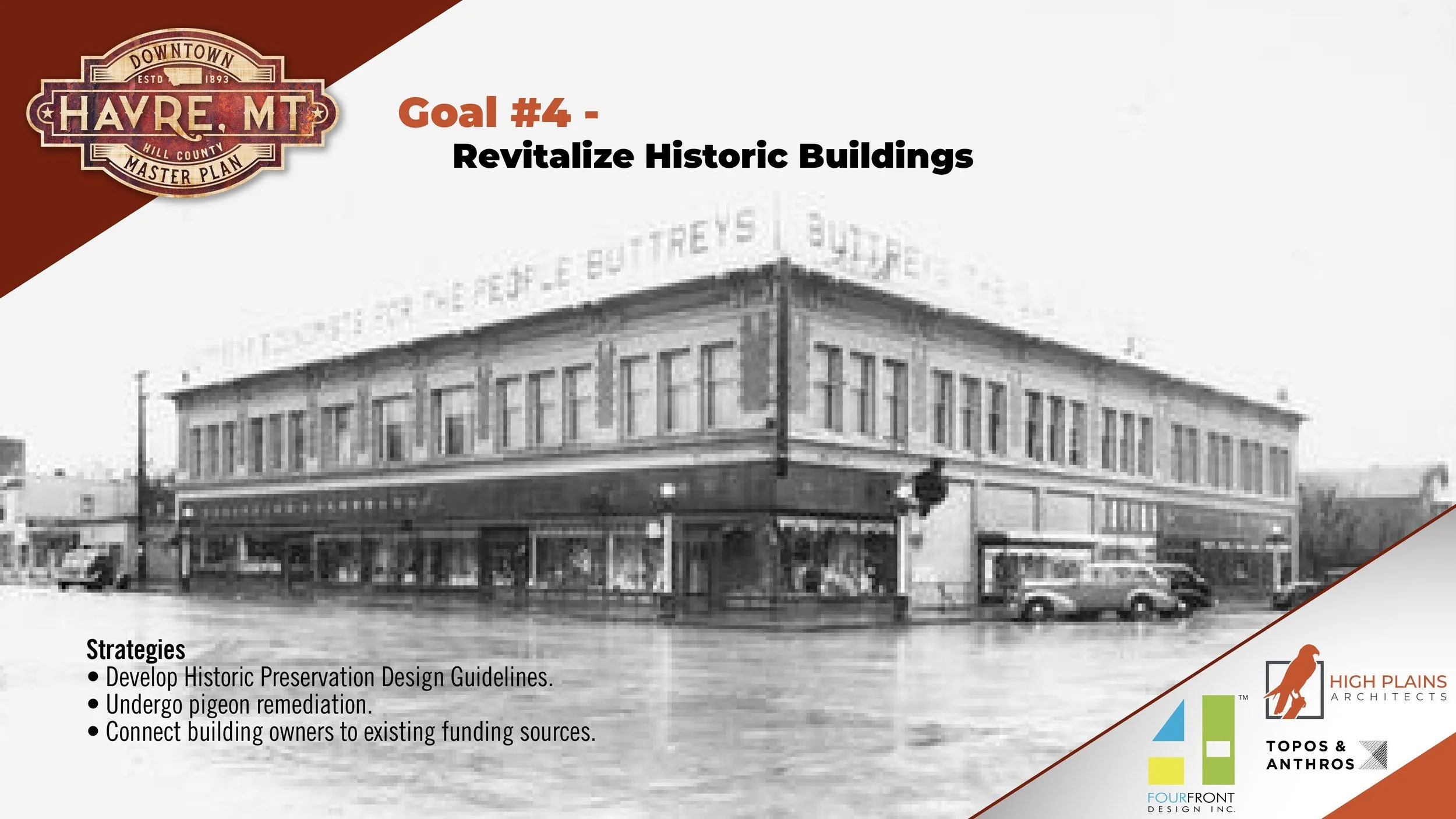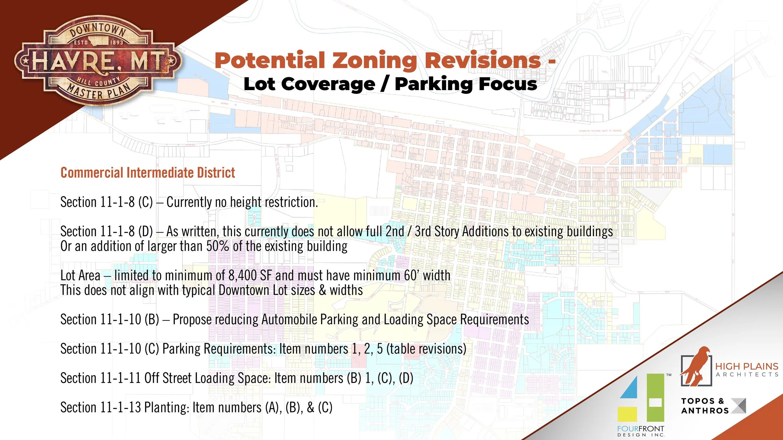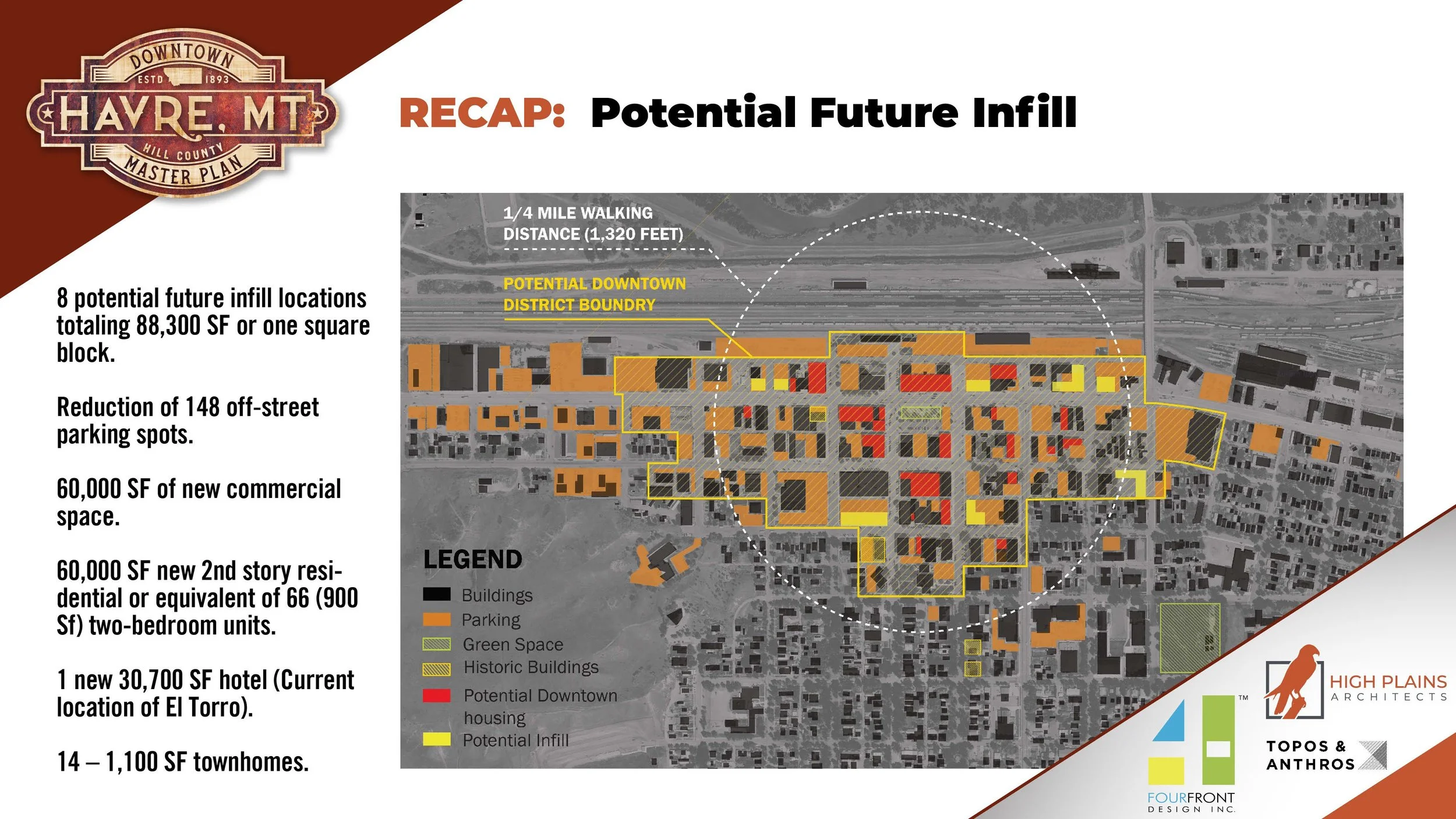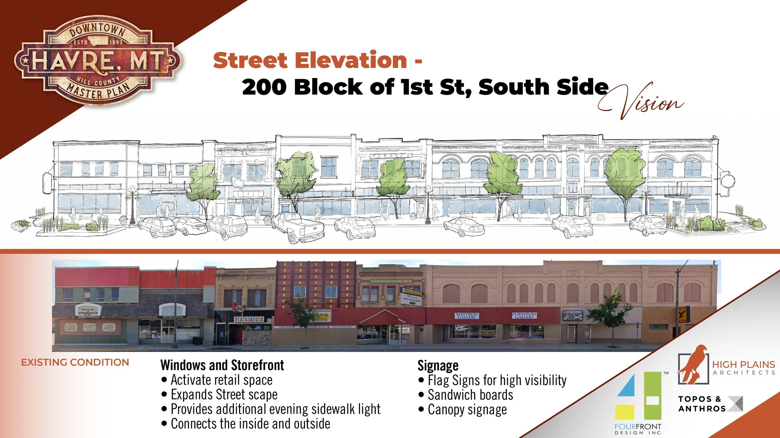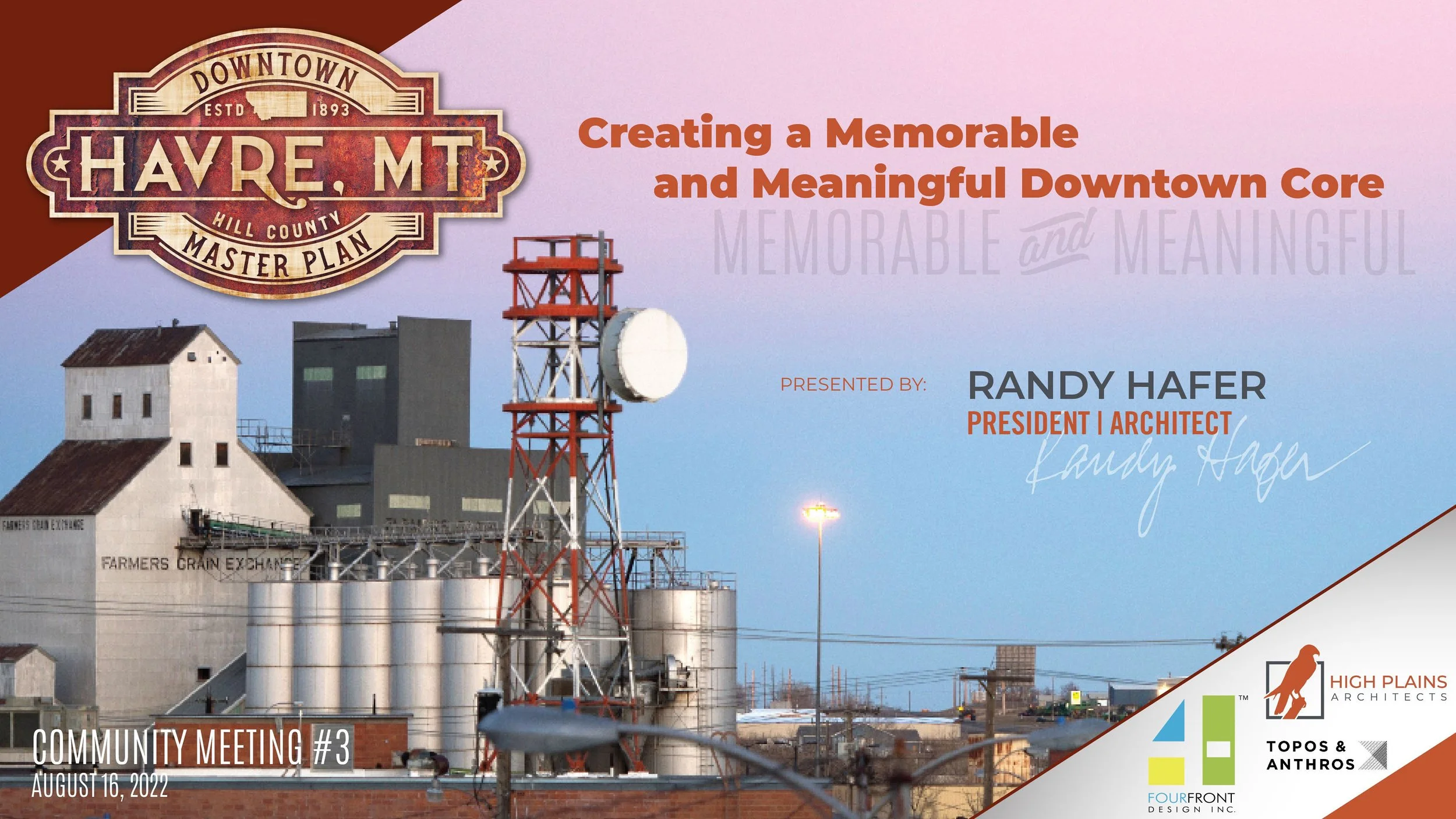 Randy Hafer presented our progress on the Downtown Havre Master Plan to roughly 50 community members on August 16th. This included a recap of our April community presentation as well as a more in-depth look at the potential that Downtown Havre represents. The following gallery contains the slide images that were presented to the community during this meeting. To access the Powerpoint Presentation from the April meeting, please click here. Thank you for your feedback and involvement!