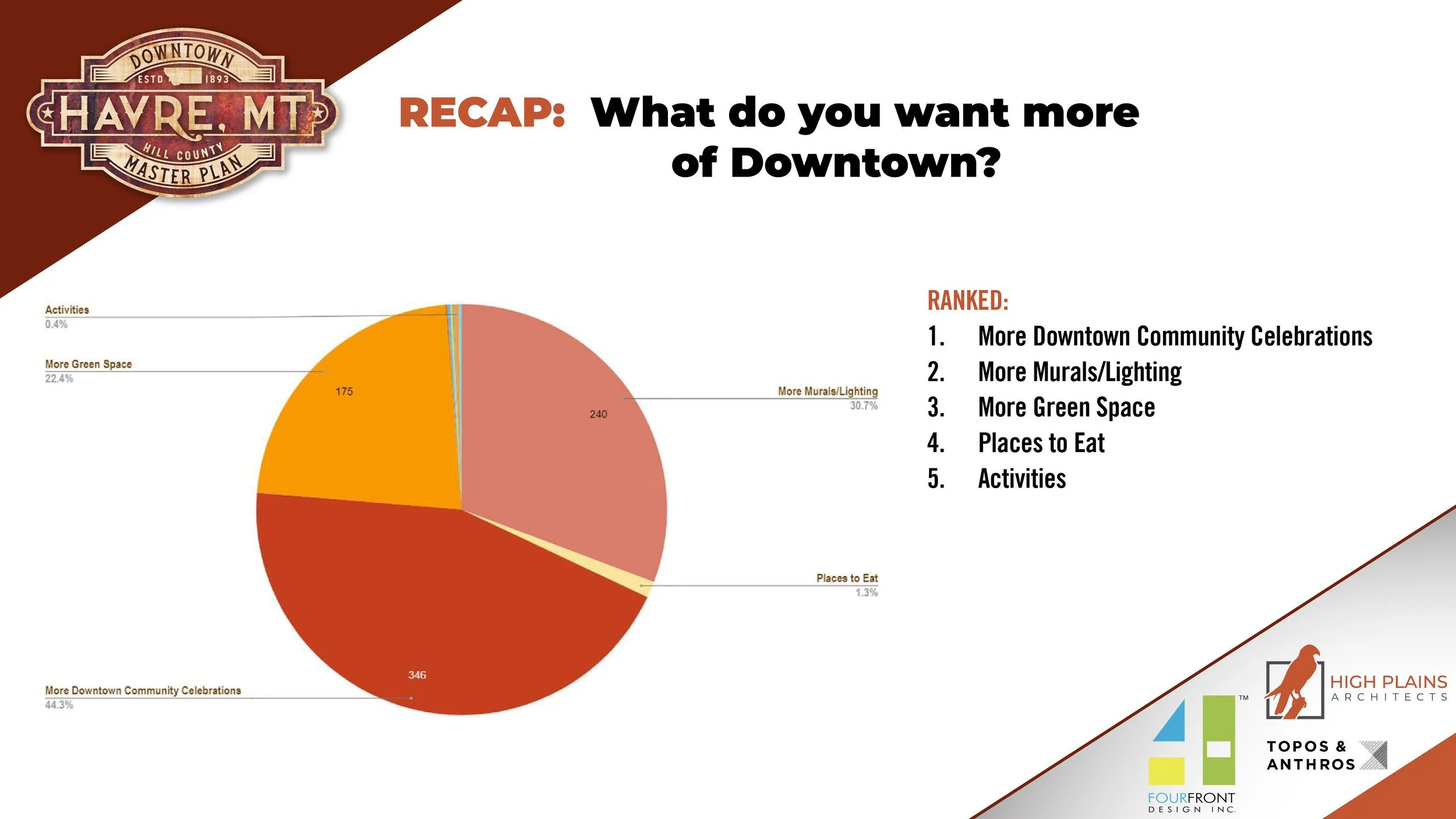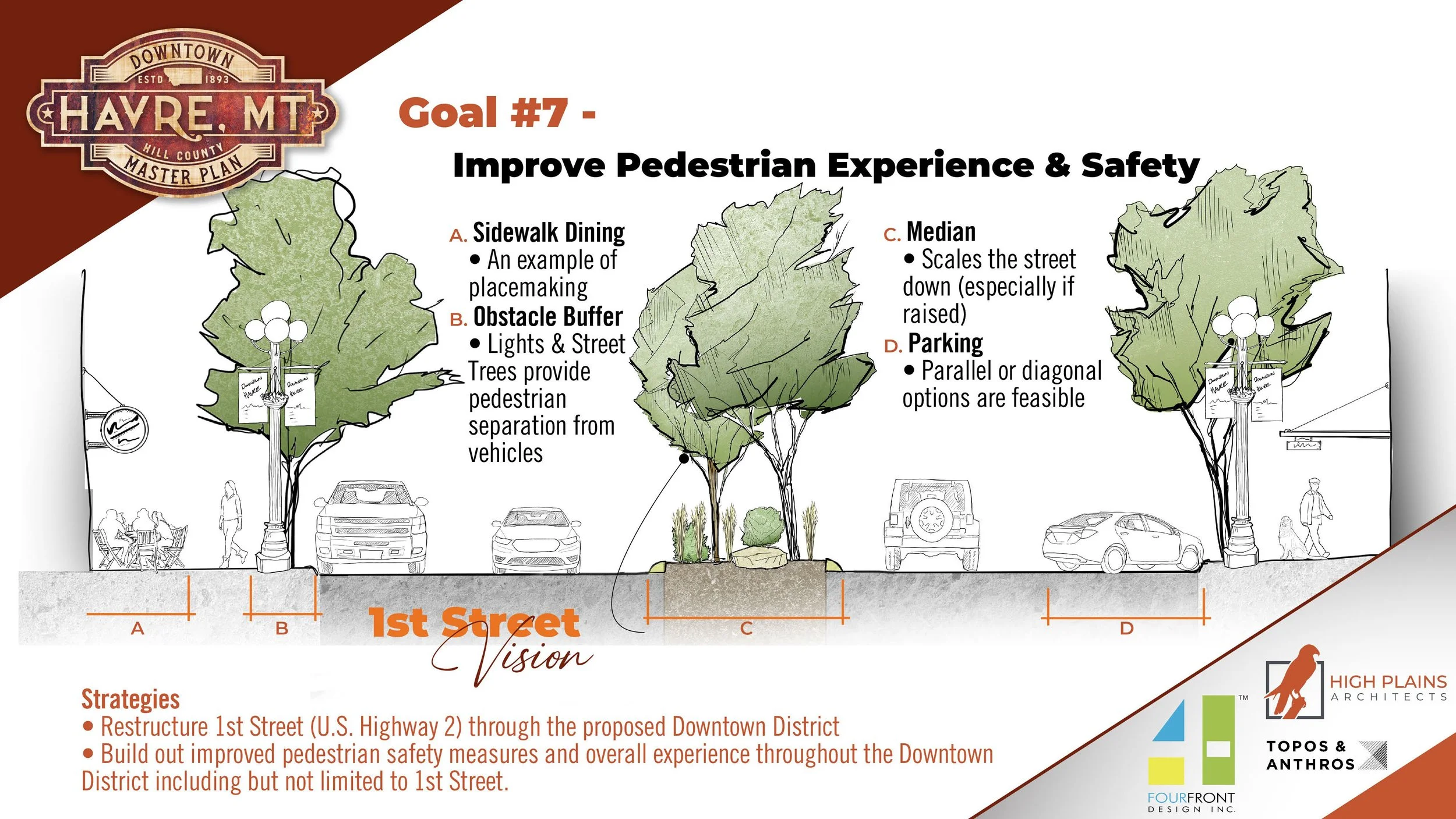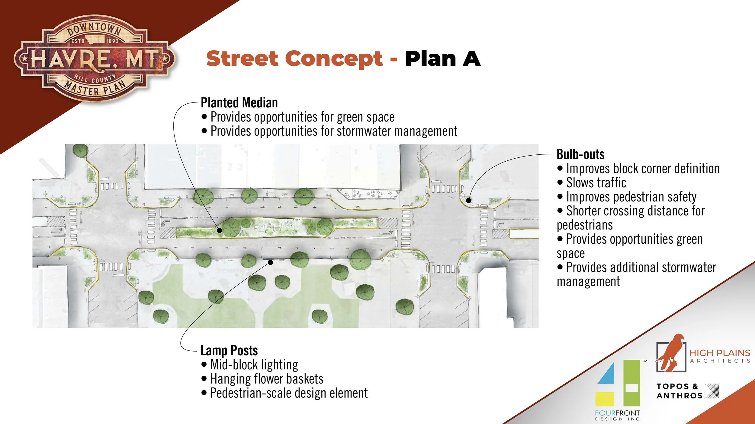 The Planning Team wrapped up the Downtown Havre Master Plan in October 2022. We are thankful for the community involvement during the process and grateful to the citizens of Havre for giving us your ideas, providing fantastic feedback, and being receptive to our ideas as well. We are proud of the work we completed collaboratively with the Havre community and very excited for the future! The Crown Jewel of the Hi-Line is a wonderful community with a lot of potential. The implementation of the Downtown Havre Master Plan will only help emphasize how truly special it is.
