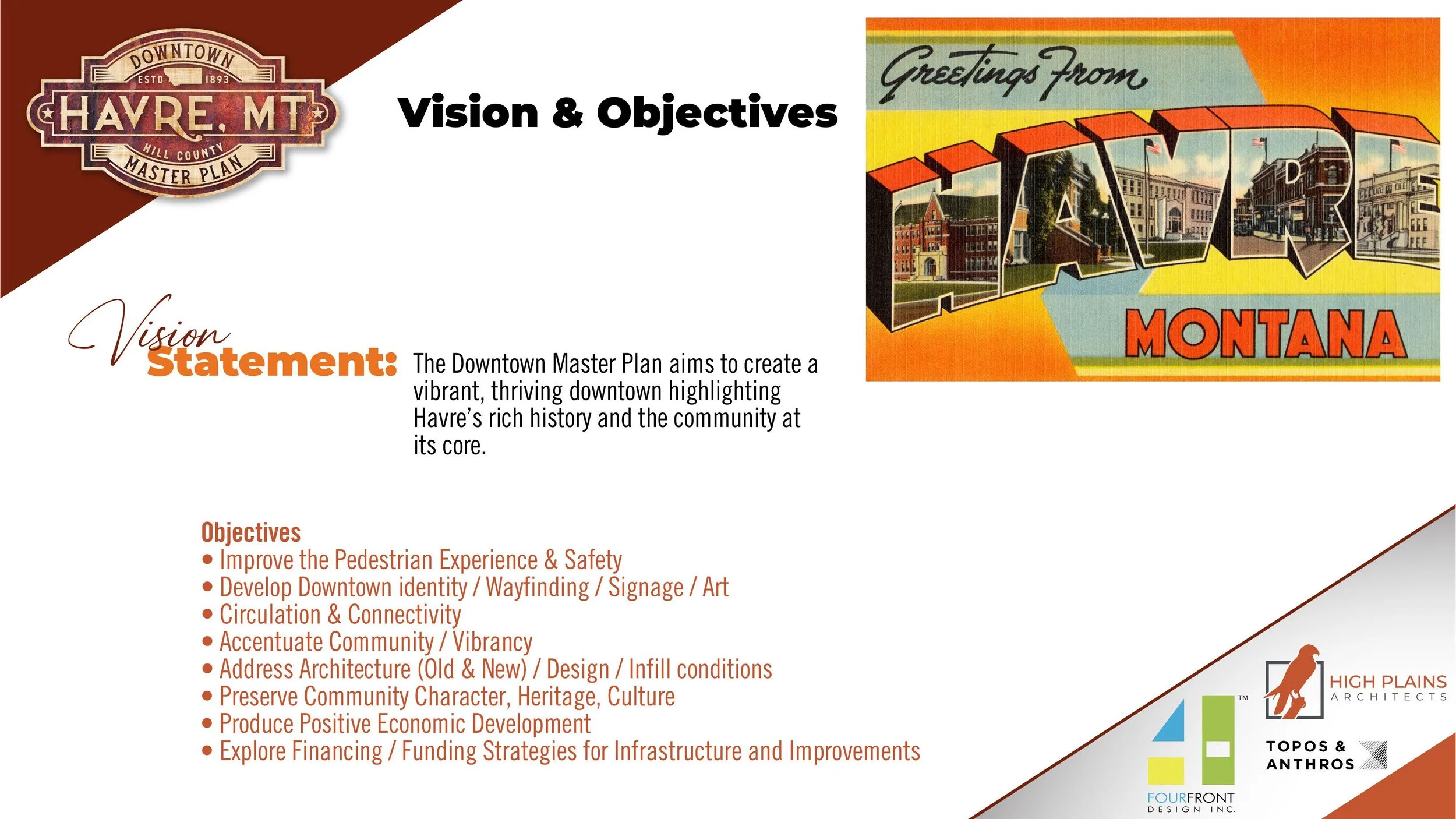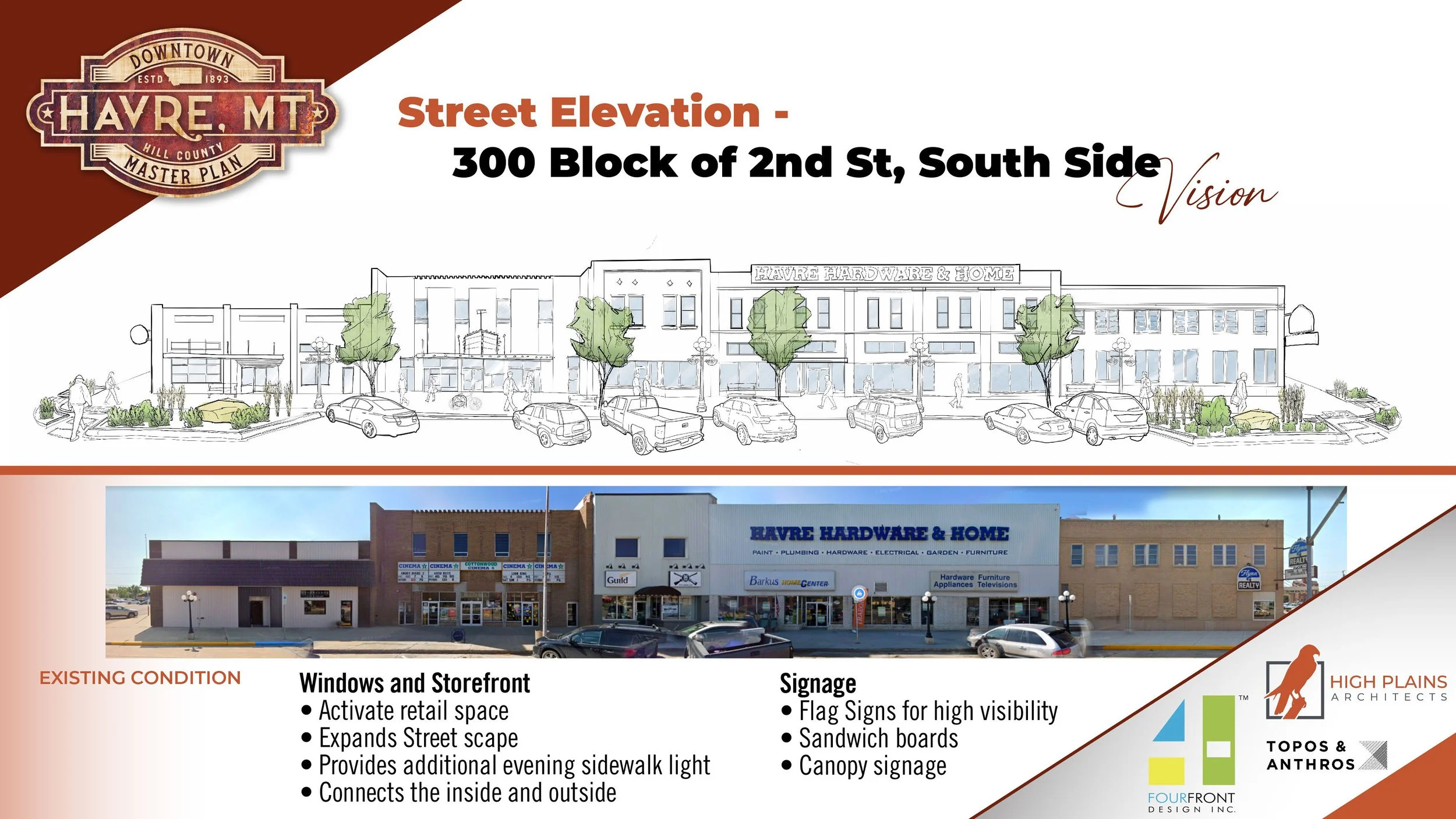 This website is a platform to keep up to date with the Downtown Havre Master Plan, a collaborative effort by Bear Paw Development Corporation, FourFront Design, Inc., Topos and Anthros, High Plains Architects, and the community of Havre.